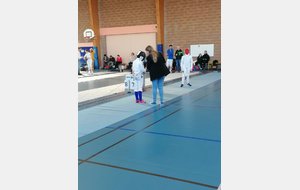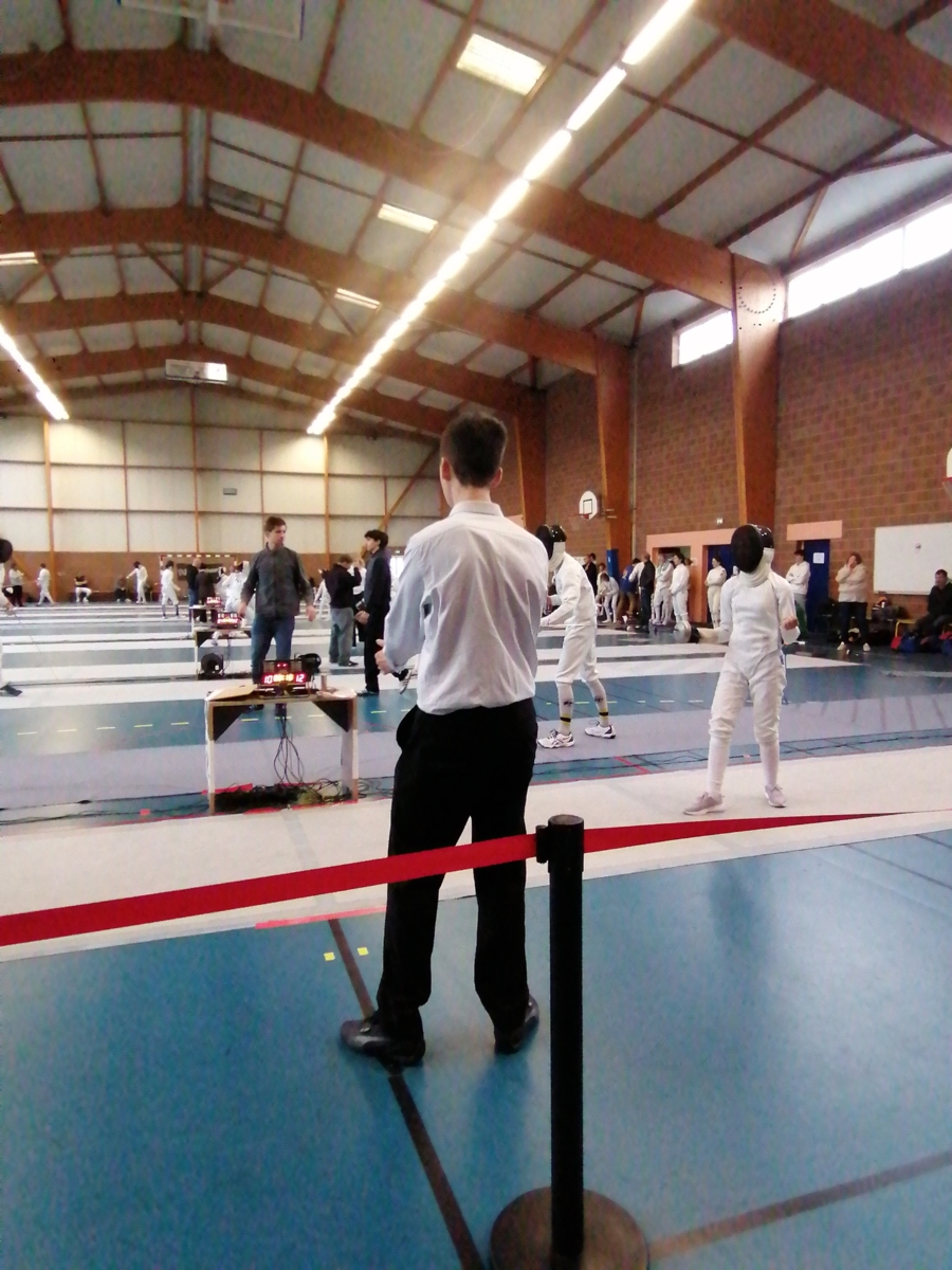 Dans le cadre de leur formation d’arbitre départemental à l’épée, Gwenaëlle LEVEQUE GUILLEMIN et Hugo LEGUYADER ont officié tout au long de la compétition. Leur engagement contribue activement au bon déroulement des épreuves et à la formation des futurs arbitres, indispensables à la pratique de notre sport.