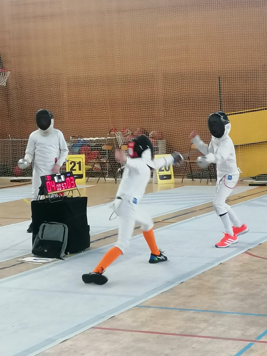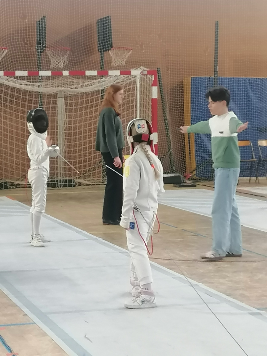 Samedi, Gwenaëlle LEVEQUE GUILLEMIN et Hugo LEGUYADER ont officié en catégorie M9 dans le cadre de leur formation d’arbitre départemental en épée.