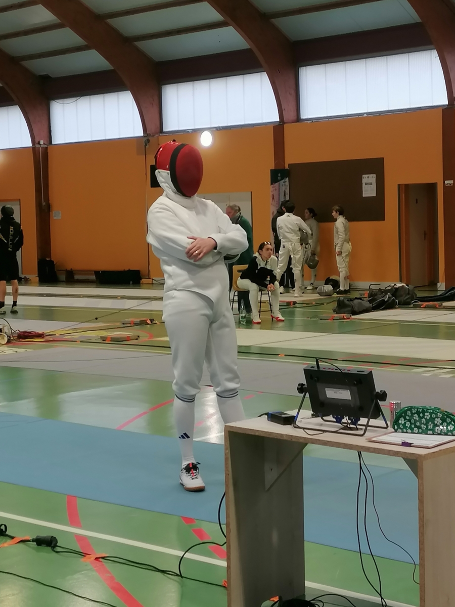 Gwenaëlle LEVEQUE GUILLEMIN, en formation d’arbitre départemental épée, officiait sur les pistes. Une belle étape dans son parcours d’arbitrage, essentielle au bon déroulement des compétitions.