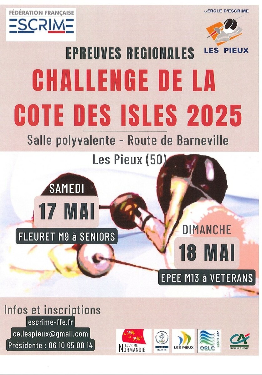 Venez participer au challenge de la cote des Isles le dimanche 18 mai 2025 à Les Pieux (50), de M13 à Vétérans.