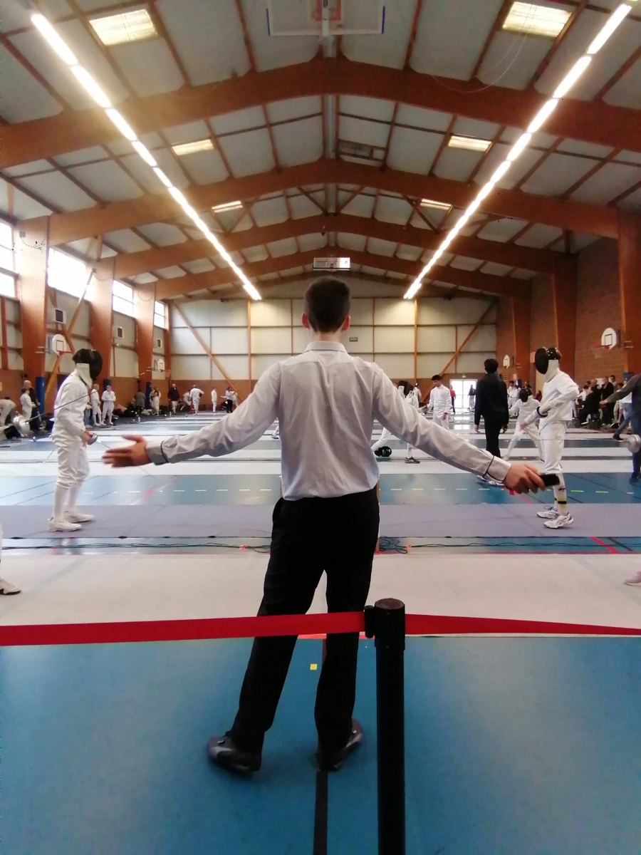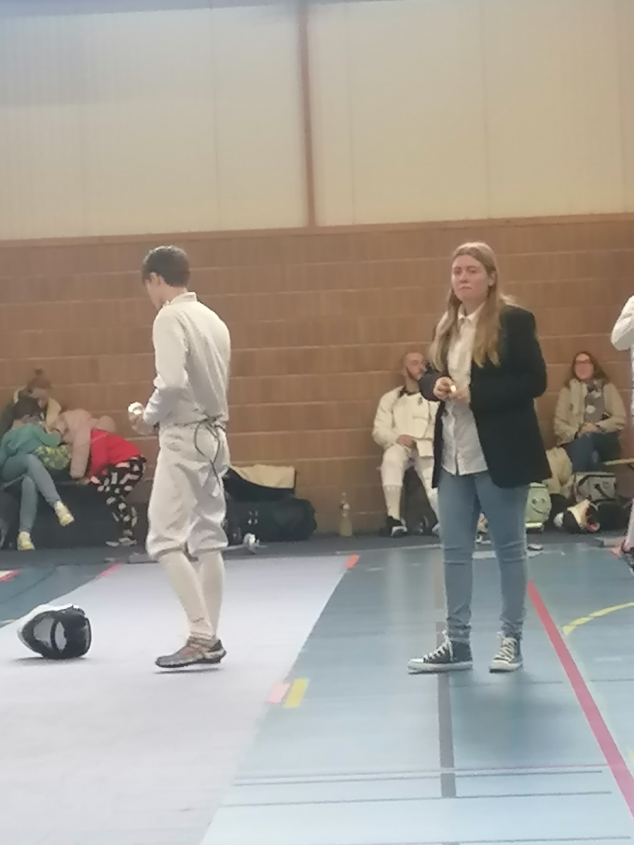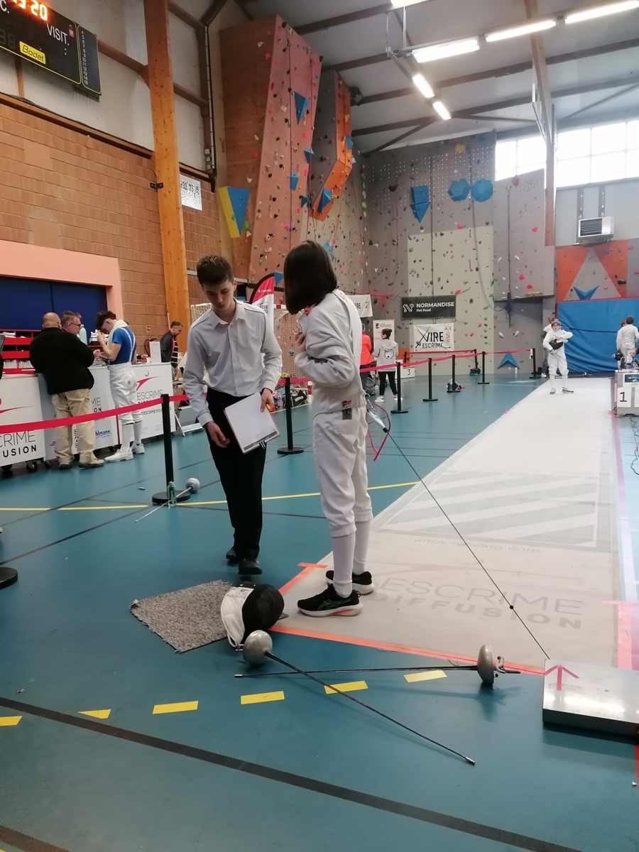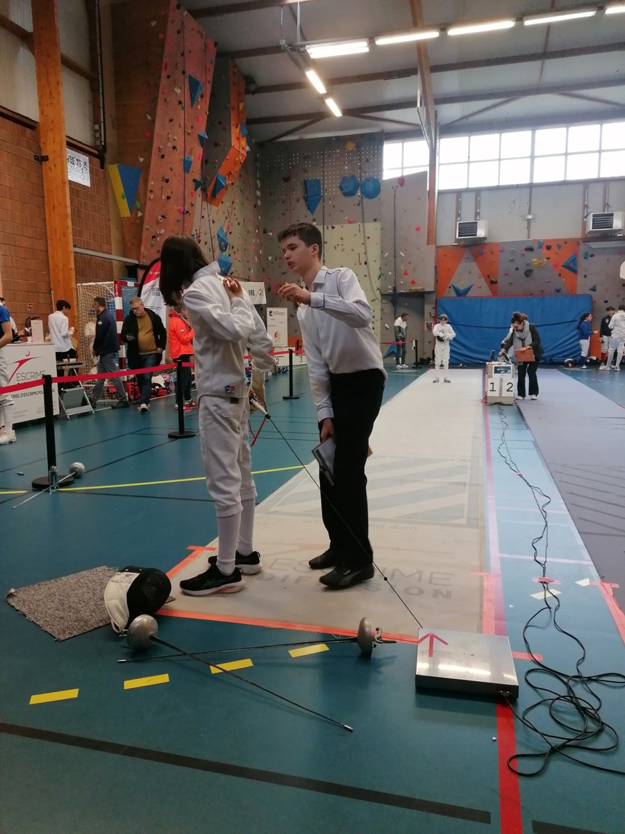 Dans le cadre de leur formation d’arbitre départemental à l’épée, Gwenaëlle LEVEQUE GUILLEMIN et Hugo LEGUYADER ont officié tout au long de la compétition. Leur engagement contribue activement au bon déroulement des épreuves et à la formation des futurs arbitres, indispensables à la pratique de notre sport.