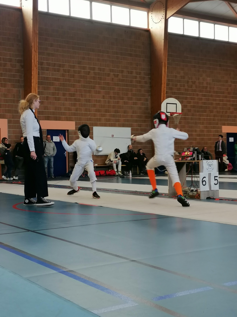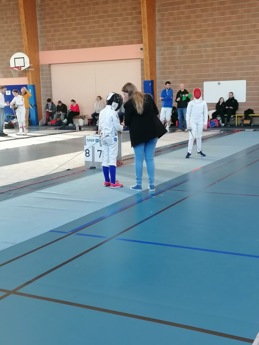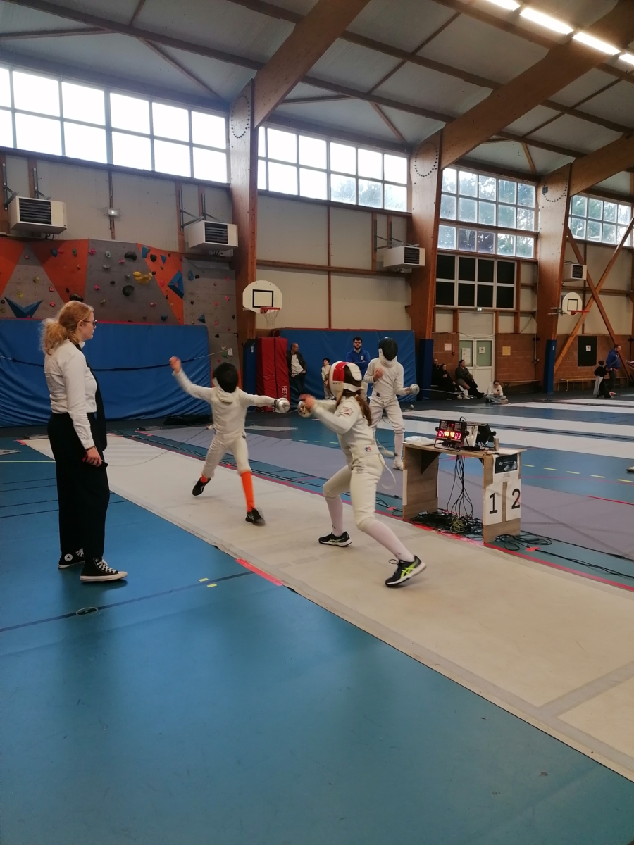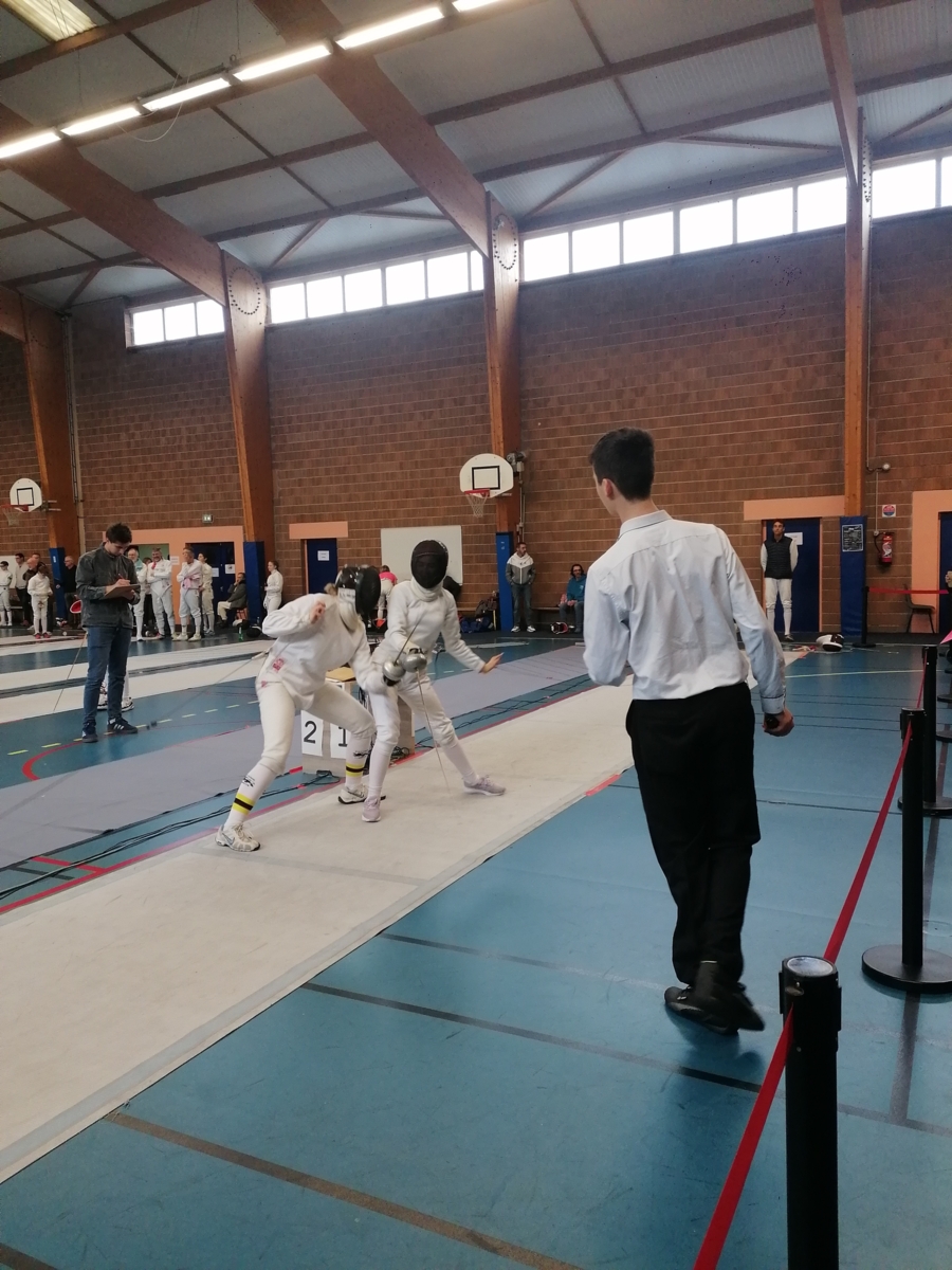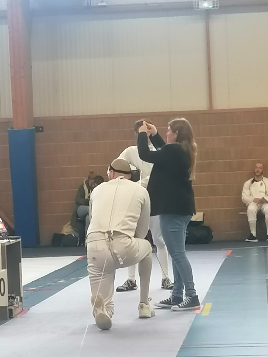Dans le cadre de leur formation d’arbitre départemental à l’épée, Gwenaëlle LEVEQUE GUILLEMIN et Hugo LEGUYADER ont officié tout au long de la compétition. Leur engagement contribue activement au bon déroulement des épreuves et à la formation des futurs arbitres, indispensables à la pratique de notre sport.