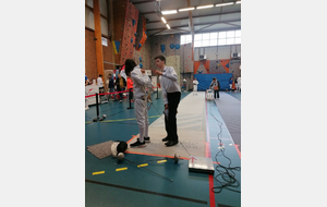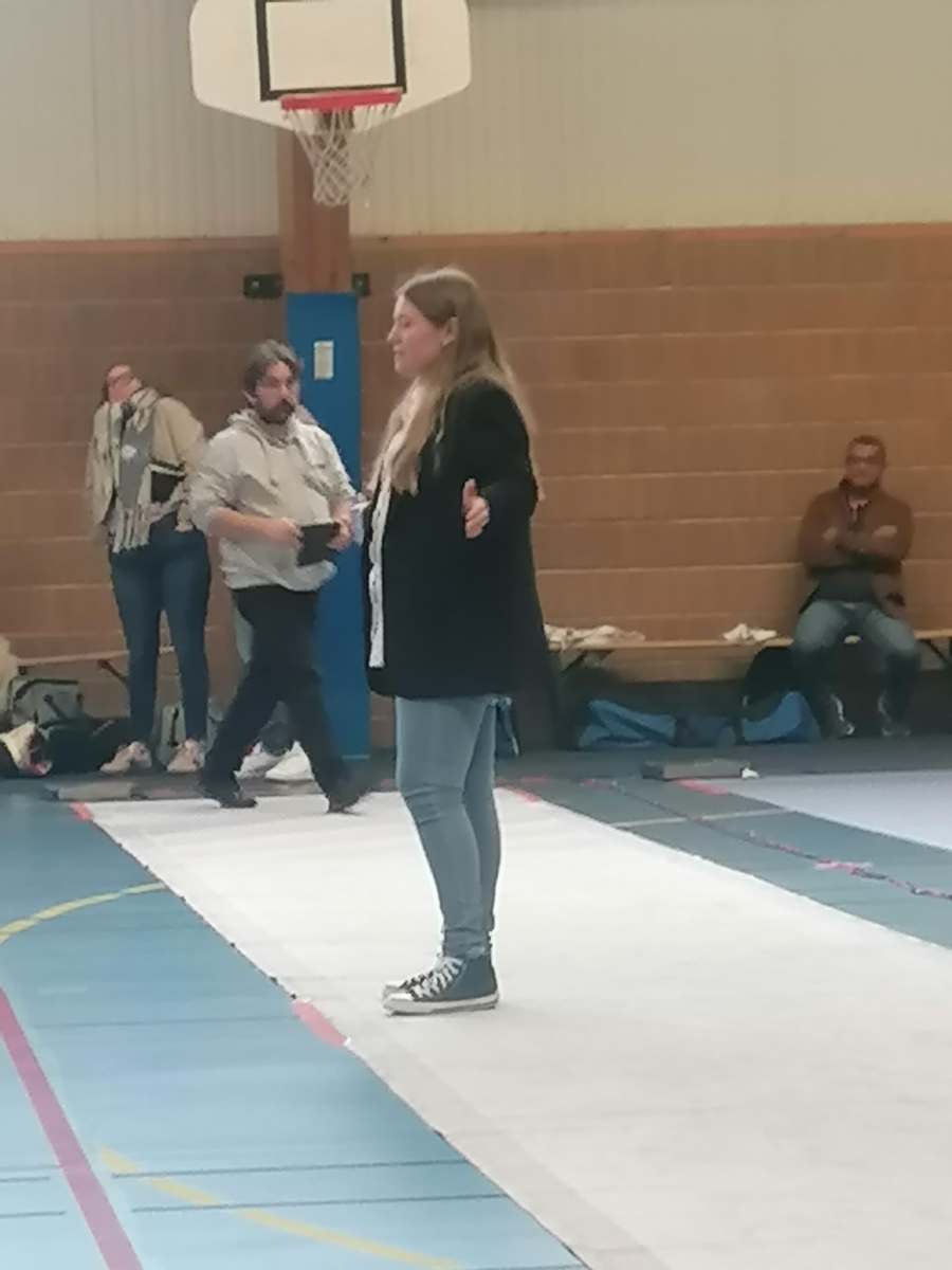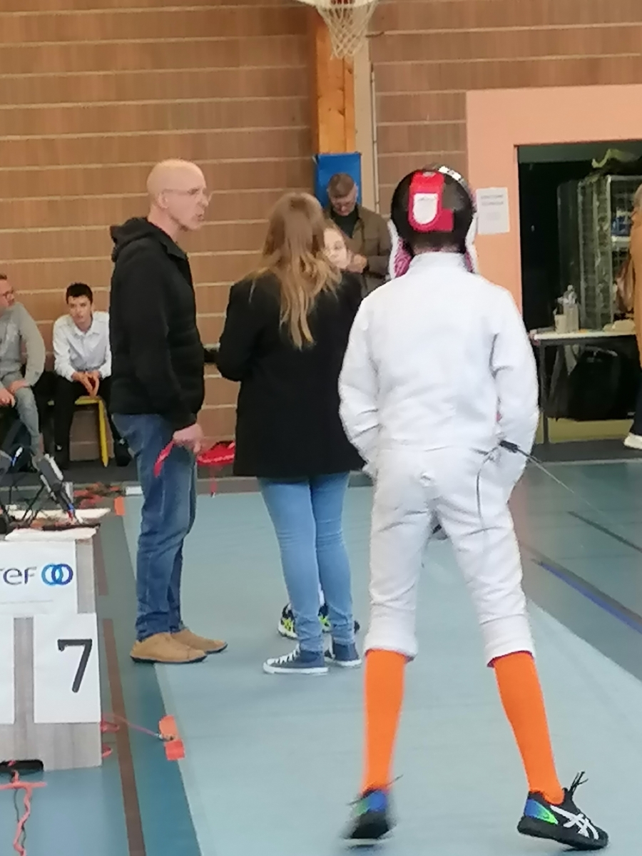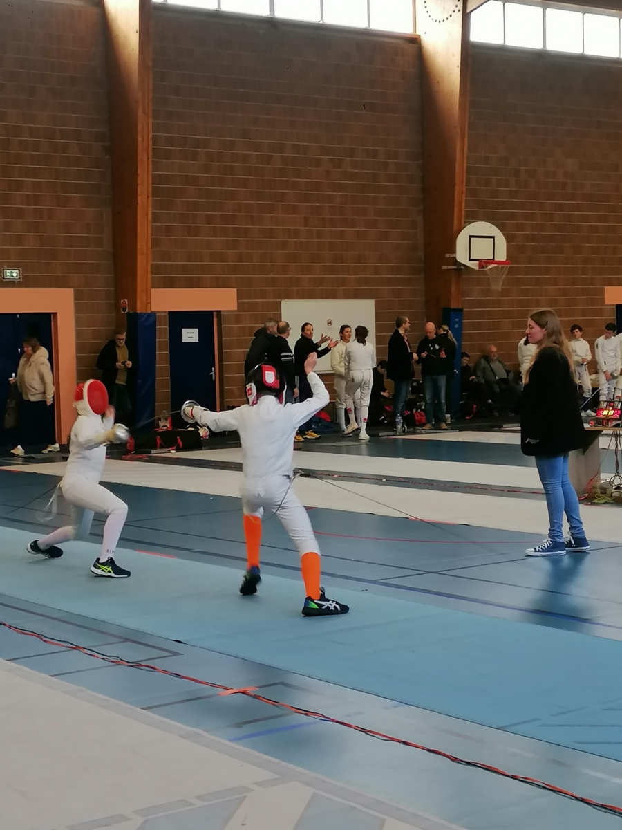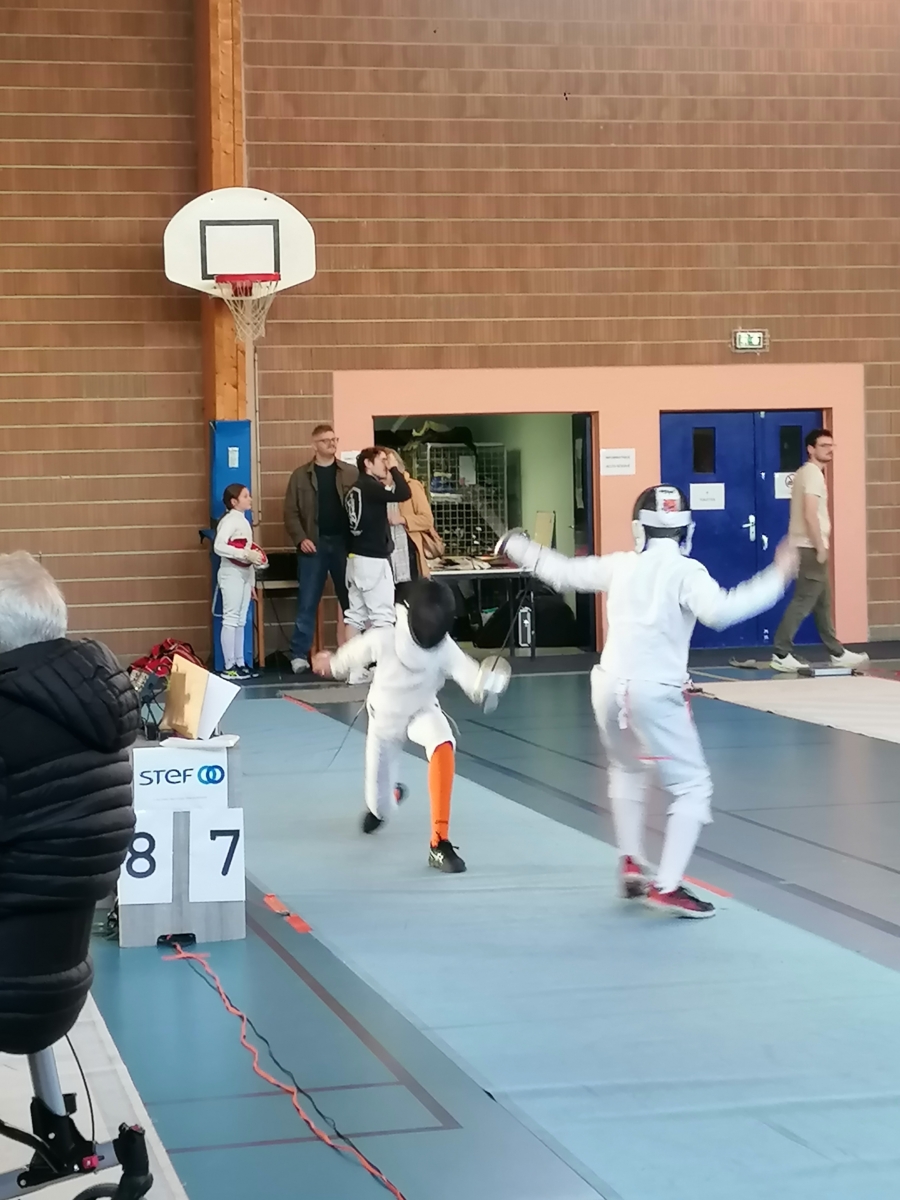 Dans le cadre de leur formation d’arbitre départemental à l’épée, Gwenaëlle LEVEQUE GUILLEMIN et Hugo LEGUYADER ont officié tout au long de la compétition. Leur engagement contribue activement au bon déroulement des épreuves et à la formation des futurs arbitres, indispensables à la pratique de notre sport.