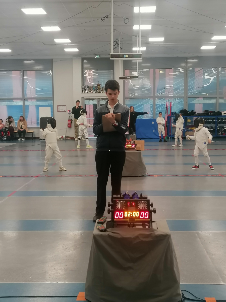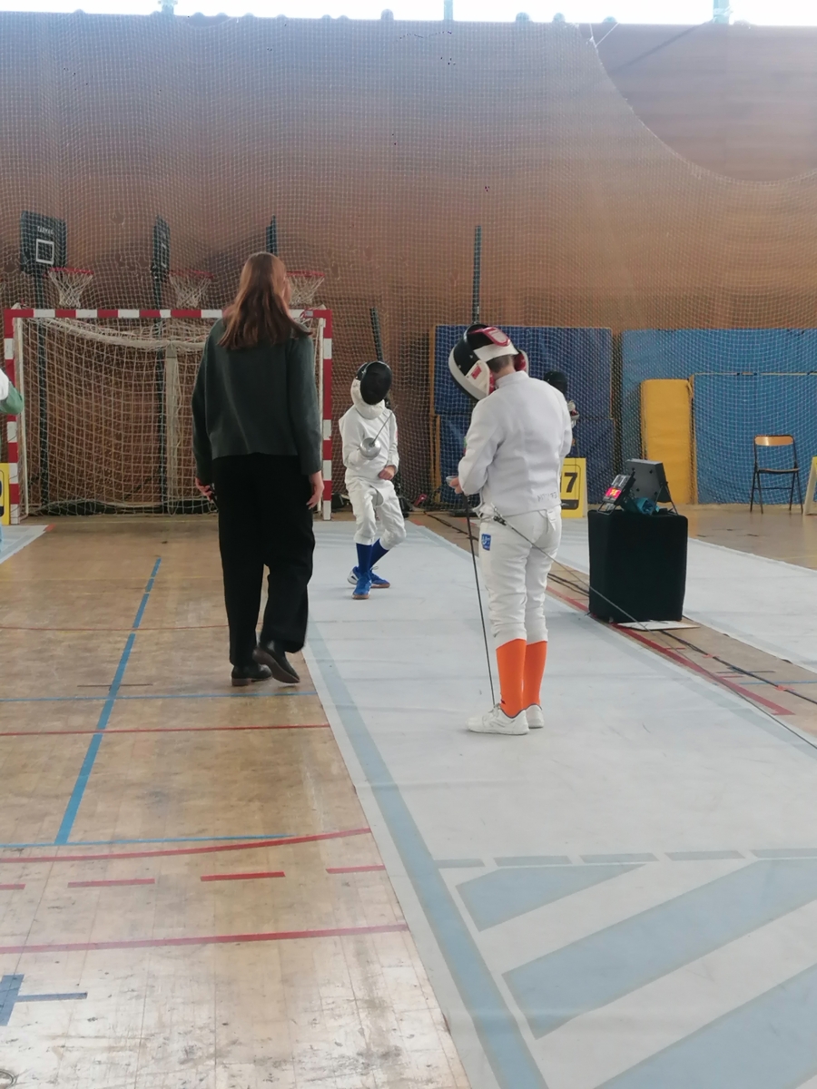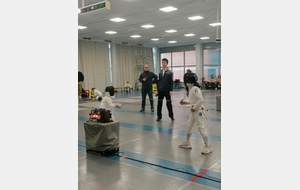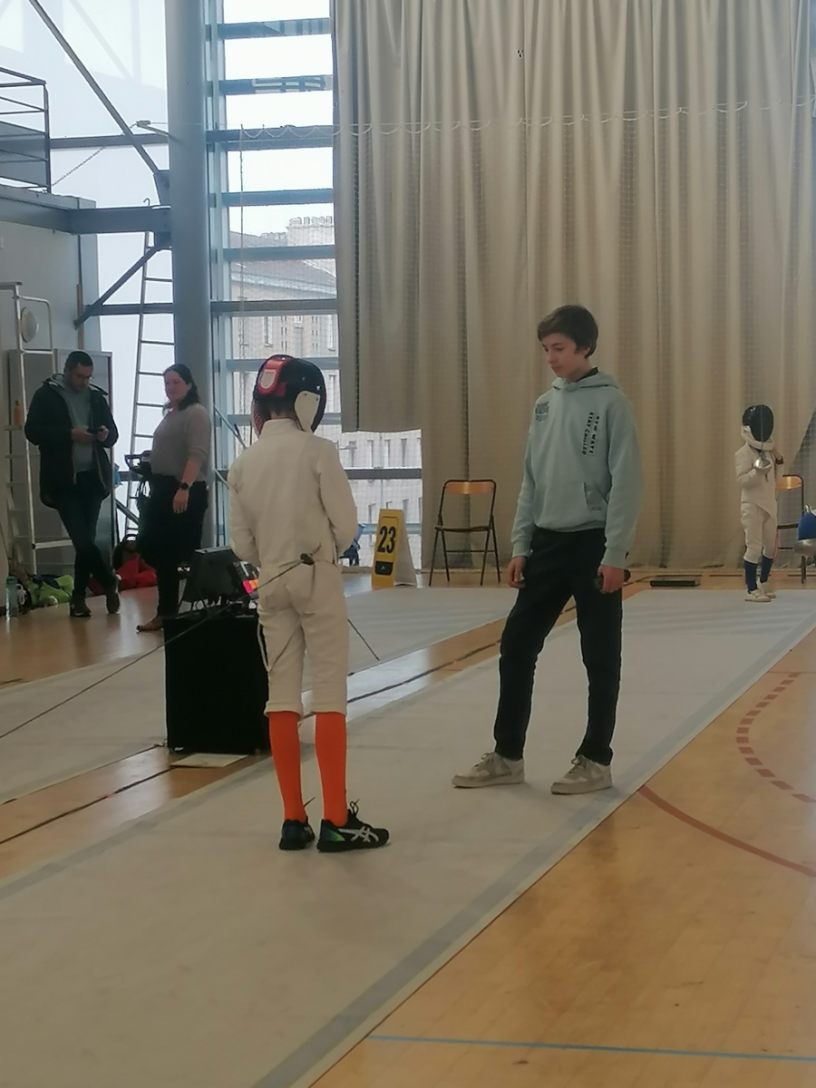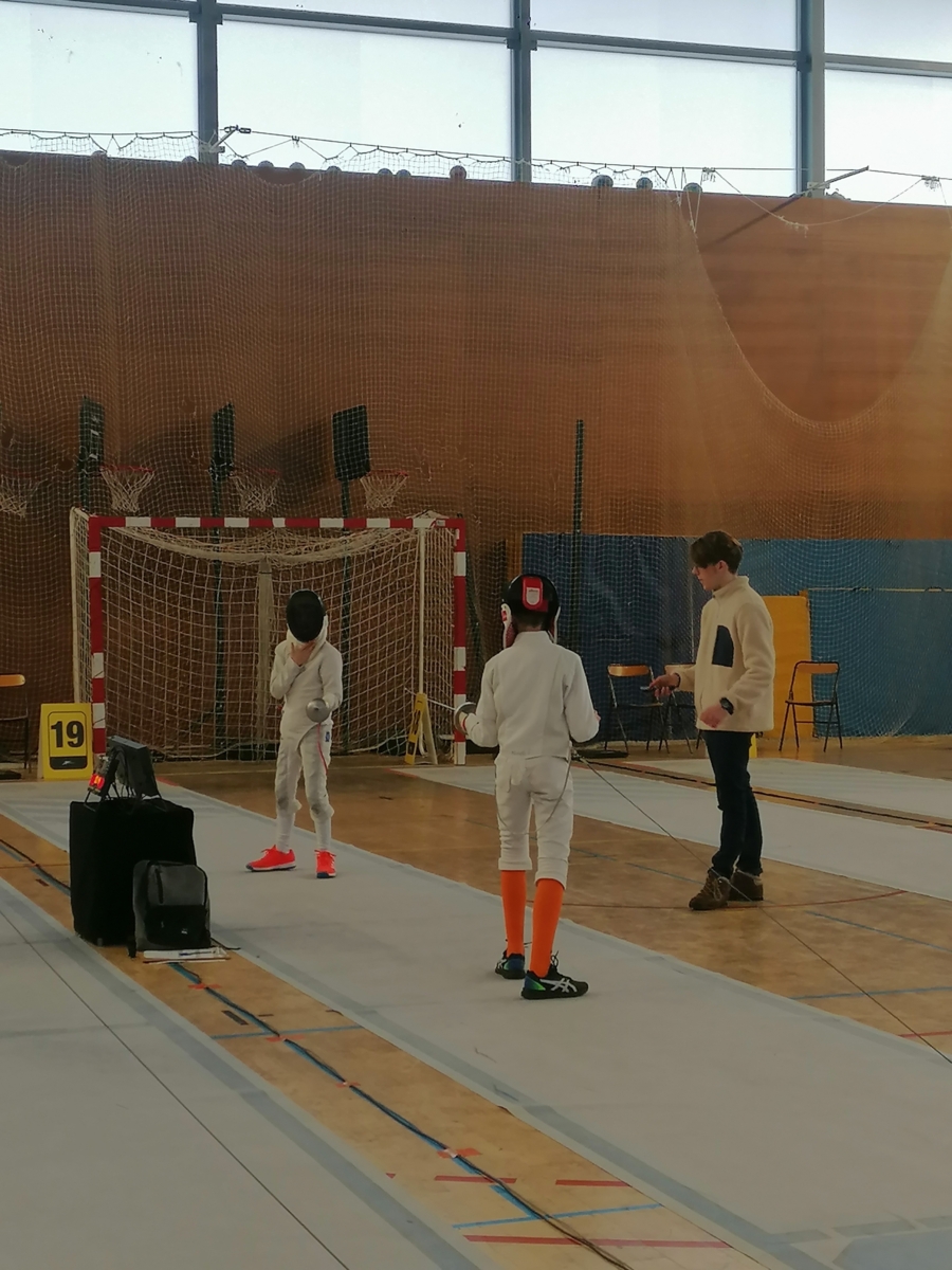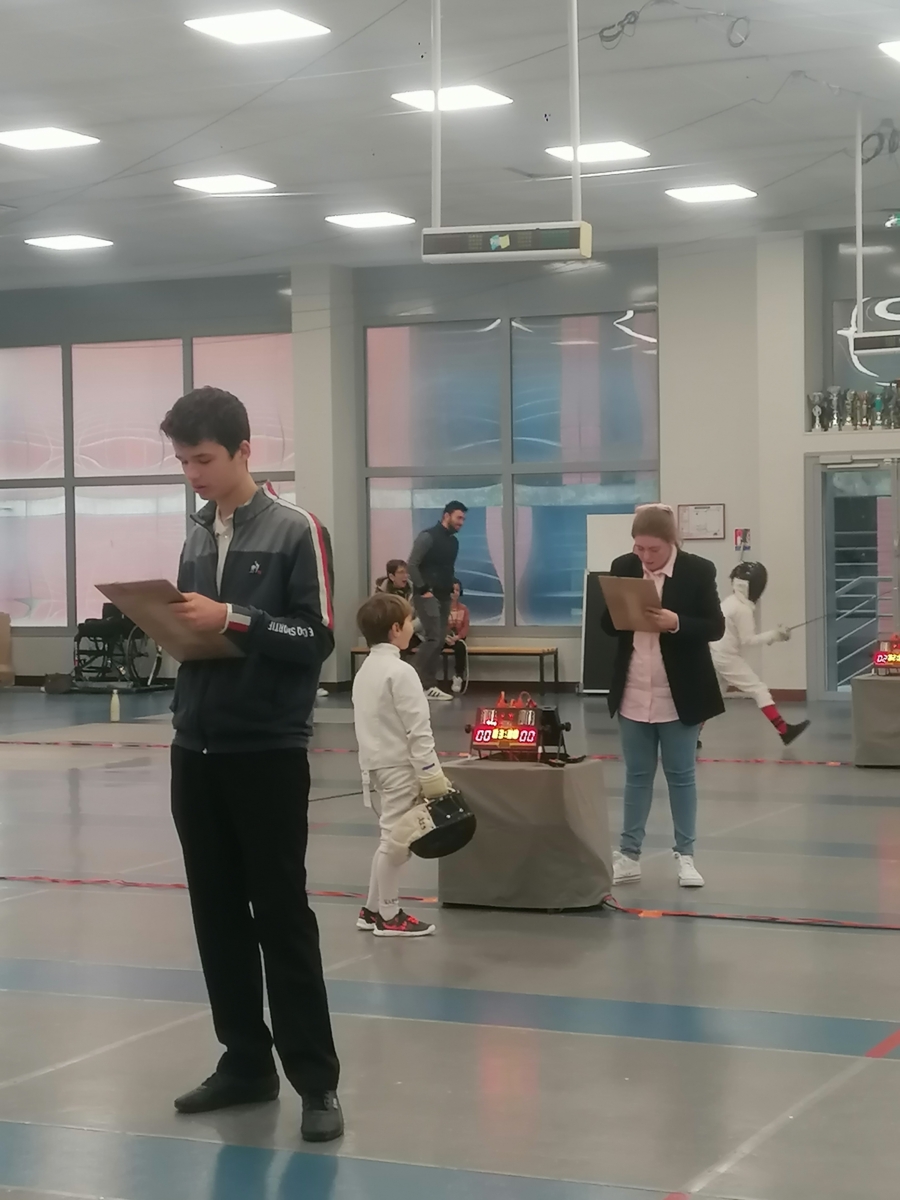 Samedi, Gwenaëlle LEVEQUE GUILLEMIN et Hugo LEGUYADER ont officié en catégorie M9 dans le cadre de leur formation d’arbitre départemental en épée.