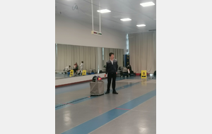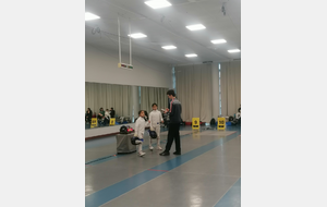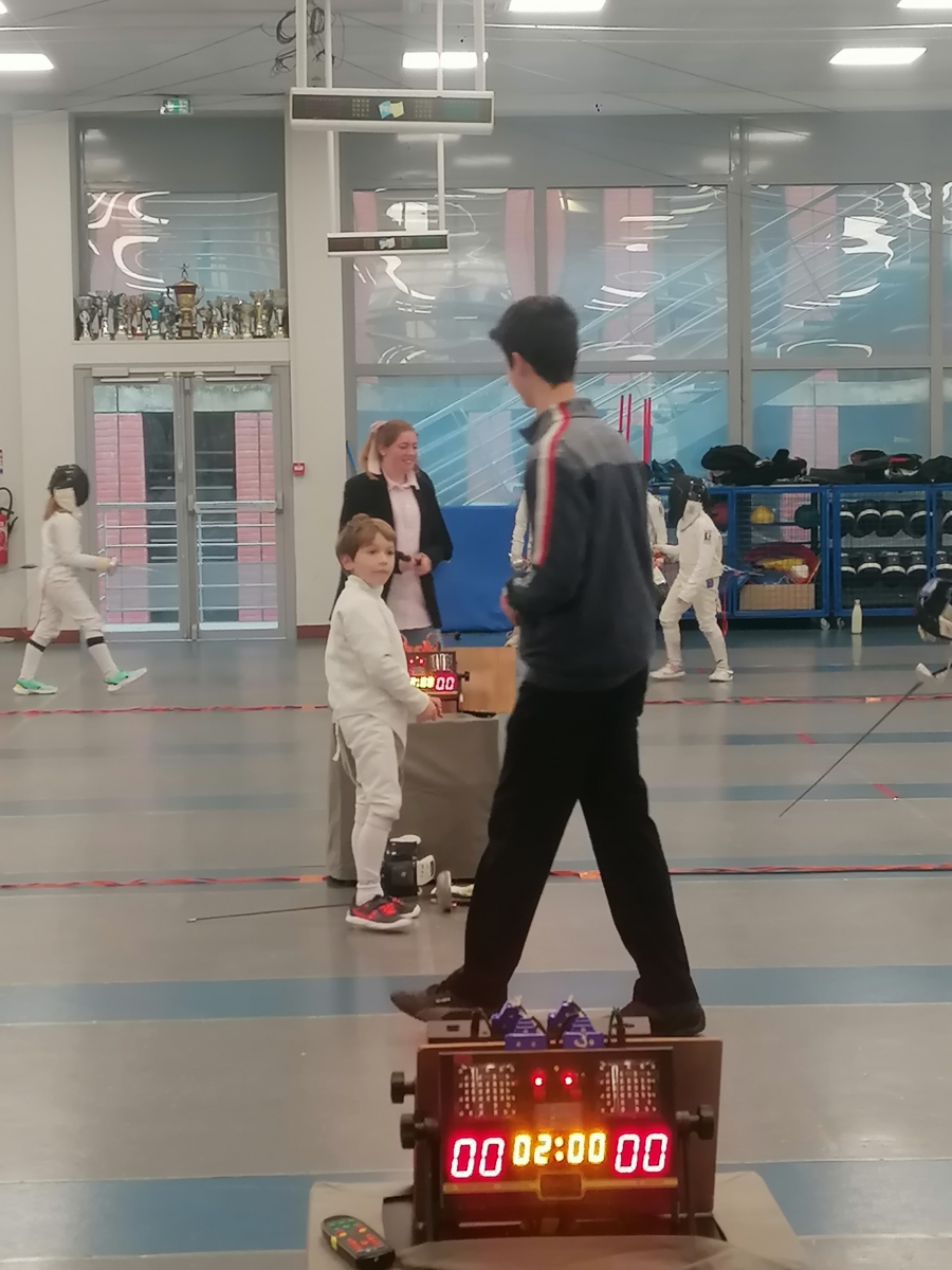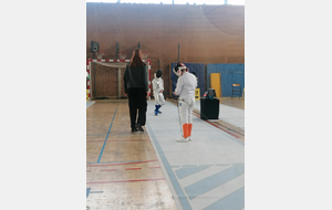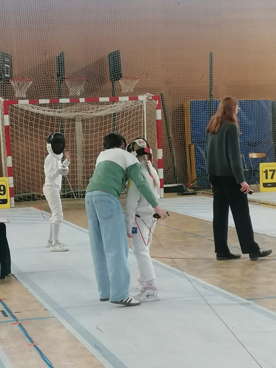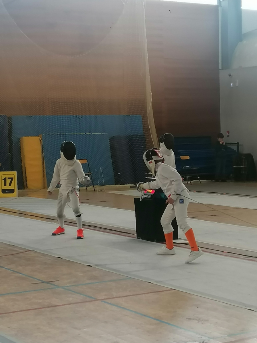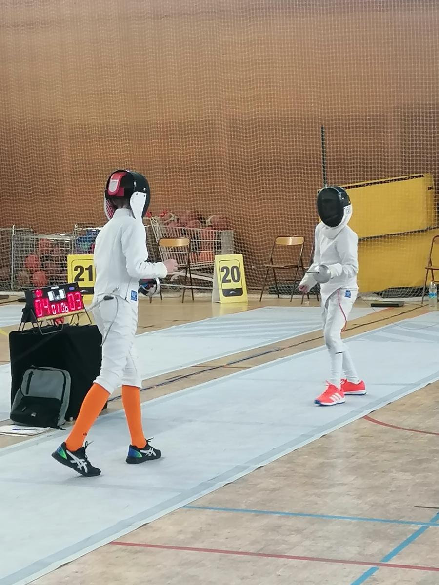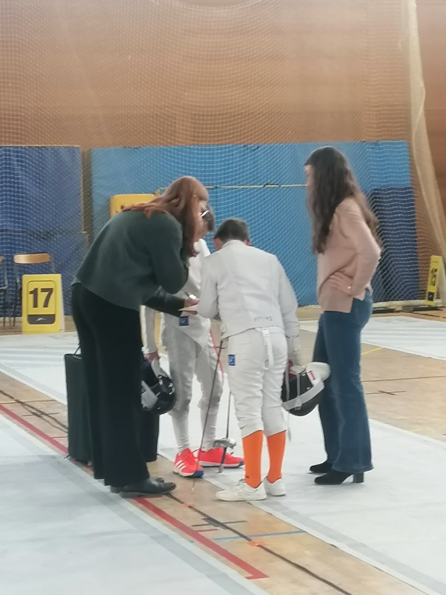 Samedi, Gwenaëlle LEVEQUE GUILLEMIN et Hugo LEGUYADER ont officié en catégorie M9 dans le cadre de leur formation d’arbitre départemental en épée.