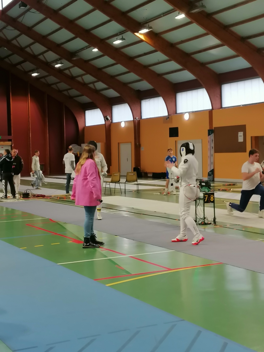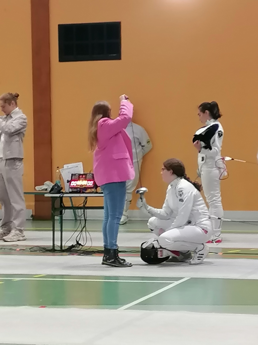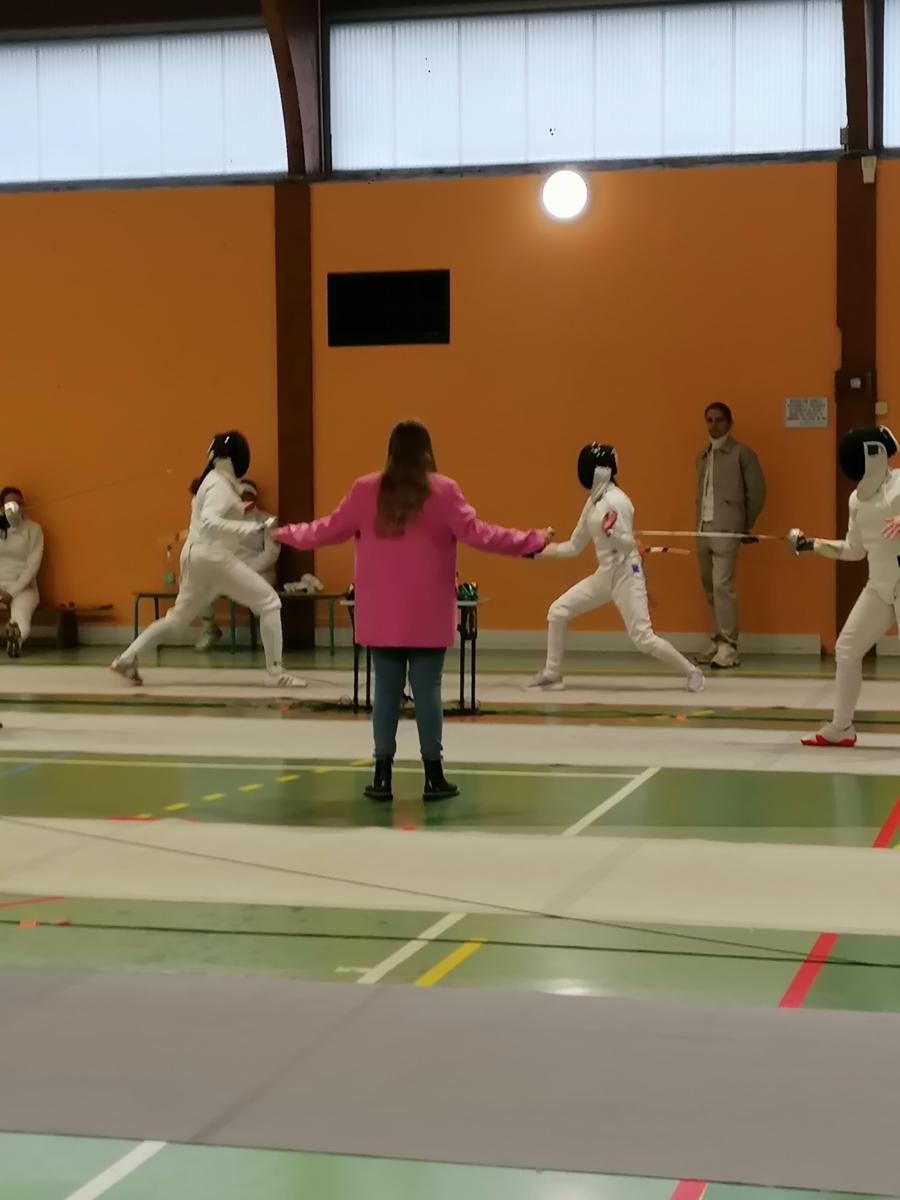 Gwenaëlle LEVEQUE GUILLEMIN, en formation d’arbitre départemental épée, officiait sur les pistes. Une belle étape dans son parcours d’arbitrage, essentielle au bon déroulement des compétitions.